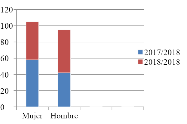 El total de la población estaba compuesta por 200 estudiantes matriculados, 100 durante el curso 2017/2018 y 100 del curso 2018/2019. De este modo, se obtuvo una muestra final de n=200 sujetos (105 mujeres y 95 hombres en total), los cuales 58 mujeres y 42 hombres pertenecen al primer año académico y 47 mujeres y 53 hombres al segundo año académico.