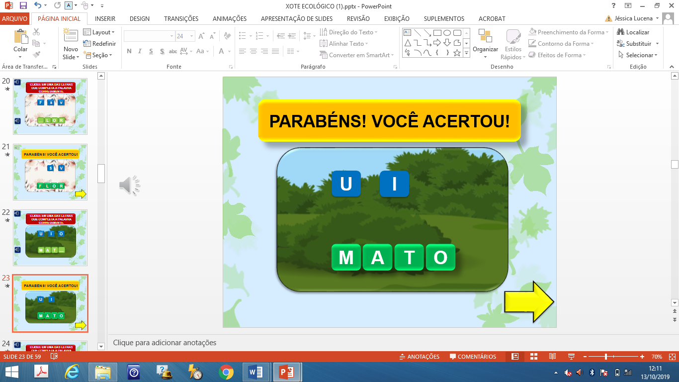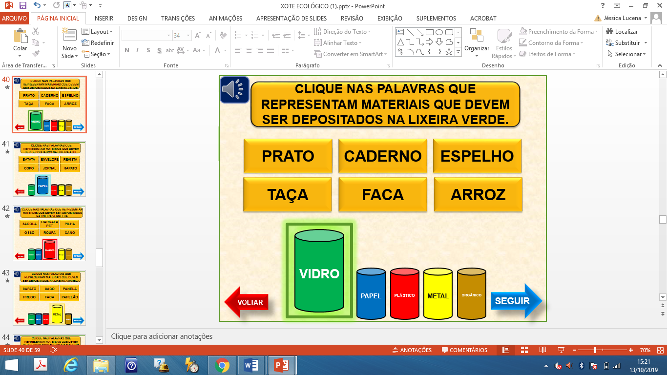 (P): “esses são muito bons. Uma maneira lúdica, que prende a atenção dos adultos, né. E assim, é uma metodologia muito válida, uma maneira de dar uma aula diferente, sair daquela aula tradicional, que hoje em dia é abominada”.