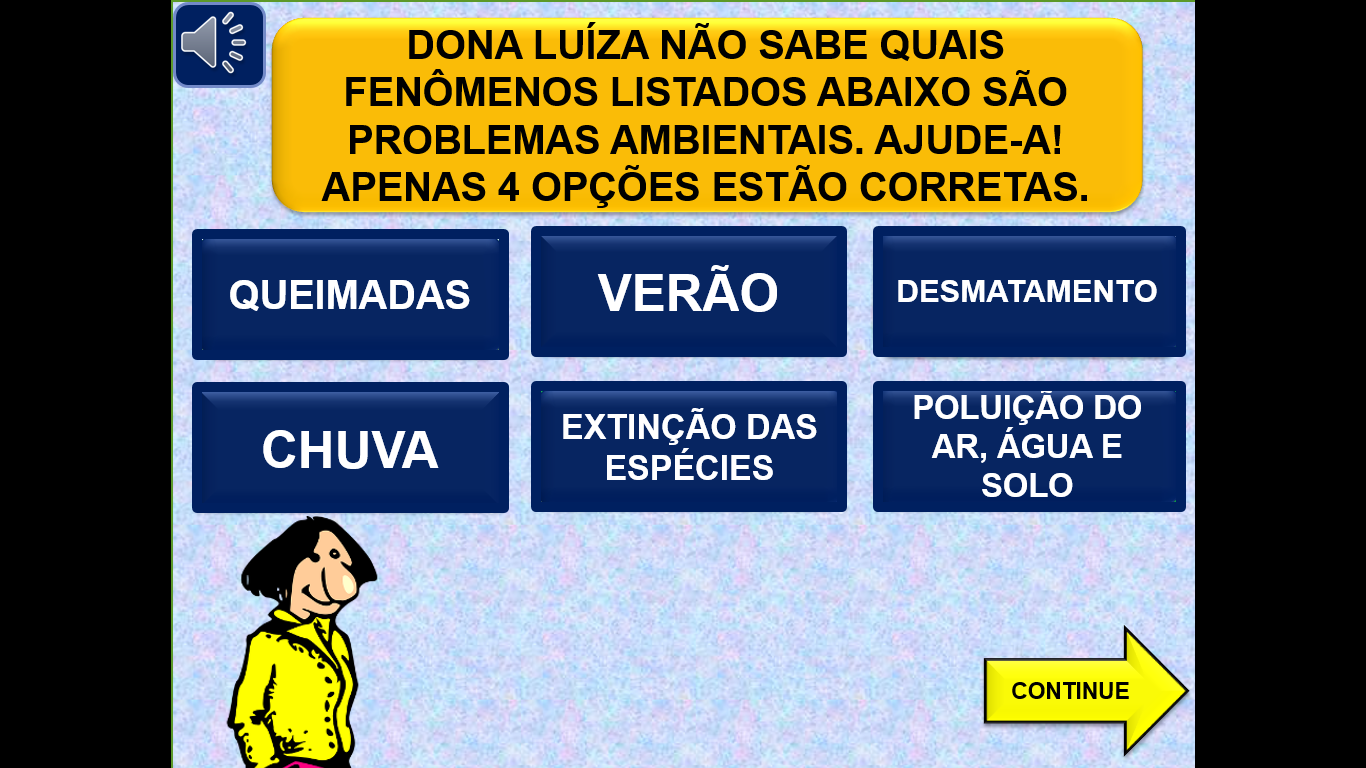 Na última tela do jogo, podemos ver que a personagem Luíza revela estar consciente dos problemas ambientais e afirma que vai cuidar mais do meio ambiente. Dessa forma, Luíza agradece pela ajuda do jogador e finaliza o jogo.