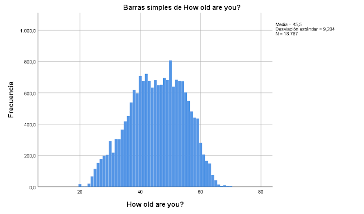 36.5% of the total sample are boys, and 63.5% are girls. The ages range from 20 to 70 years, with an average of 45.5, with fashion being 50, coinciding with the social phenomenon known as the baby boom of the 1970s.