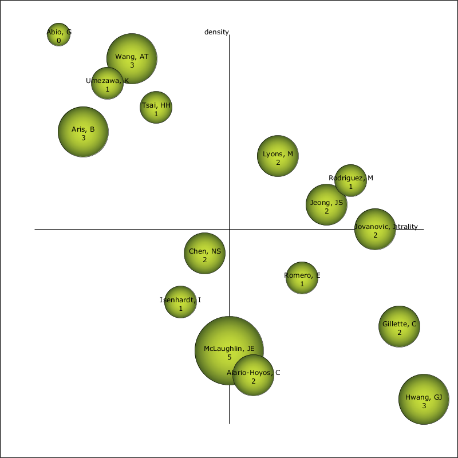 As for the authors, and bearing in mind all the years of production, there is a variety of authorship according to the field of study observed (Figuras 6a y 6b). In this case, in FLCL the most relevant authors –given their location in the diagram– are Lyons, M., Rodríguez, M. and Jeong, J.M., while in FLLE are Rajalekshmi, K.G., Uosaki, N., and Tsai, C.W. For the next few years –due to their situation in the quadrant– Chen, N.S. and Isenhardt, I. in FLCL and Kim H.S., and Fanguy, M. in FLLE should be taken into consideration.