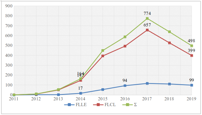 The greatest scientific production is observed, both for FLLE and FLCL, in the year 2017, being from its beginnings until such date a constant development. On the other hand, it is from the following year when production begins to decline (figura 1).