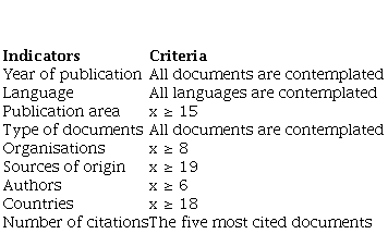 For this purpose, a bibliometric cutting methodology has been followed, based on a series of procedures for estimating, quantifying and evaluating scientific production (MARTÍNEZ y col., 2015). Analytical tracking and documentary measurement techniques have been used by means of indicators (variables) of literary production (cuadro 1), based on the PRISMA-P matrix protocols. Likewise, both the study topics and their evolution have been detected through scientific mapping (LÓPEZ-ROBLES y col., 2019; LÓPEZ-BELMONTE; MORENO-GUERRERO y col., 2019b).