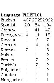 The predominant language used by researchers in this branch of knowledge is English, both in FLLE and FLCL studies, considerably distanced from the next most widely used language, Spanish (cuadro 4).
