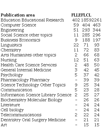 The most outstanding references, both in FLLE (cuadro 11) and in FLCL (cuadro 12), show significant differences in relation to the importance and incidence in the scientific community itself, resulting in a higher citation index in the studies covered by the term FLCL.