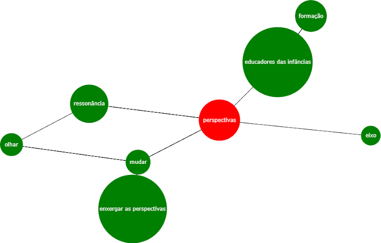 Nas oficinas de comunicação e reflexão participaram 268 educadores das infâncias, conforme já mencionado. A produção de informações construídas com os educadores das infâncias ao participarem das oficinas de comunicação e reflexão foi um momento de compreender as perspectivas dos educadores das infâncias. Com a análise dos dados, percebemos uma confusão acerca dos papéis que assumem os educadores das infâncias nos contextos ecológicos microssistêmicos, conforme apresenta a mineração de texto com a ferramenta Sobek, conforme Figura 7: