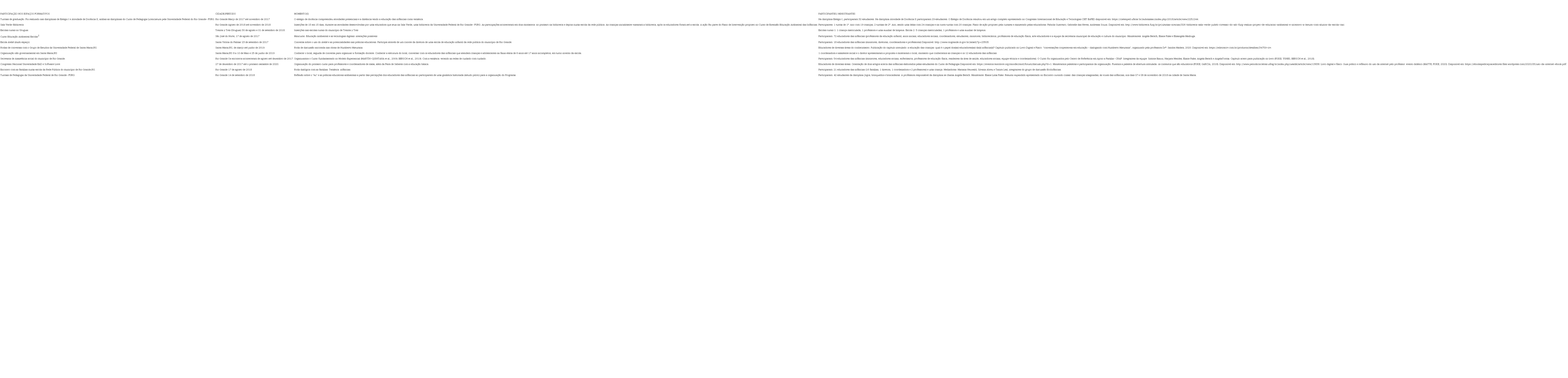 No mesmo período da Inserção Ecológica, participamos das formações docentes em diferentes espaços formativos, tanto na modalidade a distância como presencial para conhecer as práticas e os discursos dos educadores das infâncias, conforme podemos visualizar na Tabela 1.