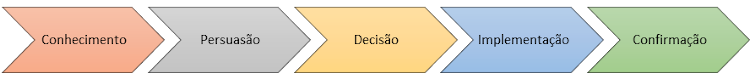 O processo de decisão de inovação ocorre em cinco estágios, estando apresentado na fig. 1 como foram explicados por Rogers (1983, p. 36):