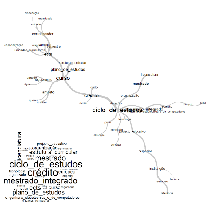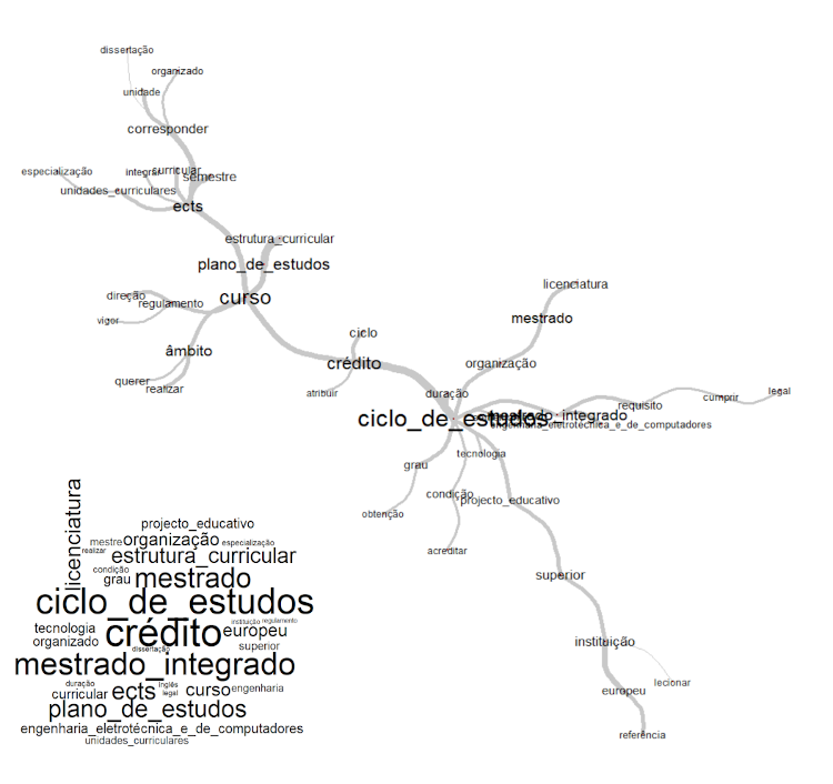 Nela ficam evidenciados os principais nós representados pelos termos “ECTS”, “curso”, “crédito”, “mestrado-integrado” e, como principal, o “ciclo de estudos”.