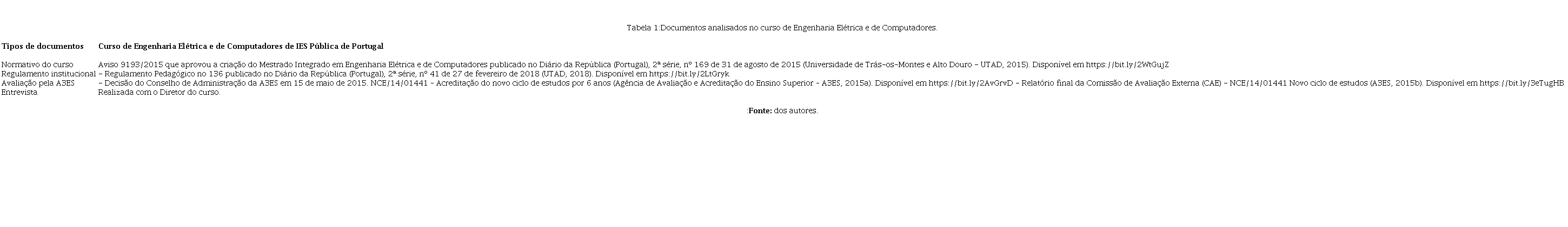 Os dados foram cruzados para explorar o impacto das novas metodologias e tecnologias no curso de Engenharia Elétrica e de Computadores. Os documentos analisados estão apresentados na Tabela 1.