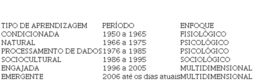 Neste artigo focalizaremos a era de aprendizagem emergente8 que, de acordo com Alexander e Fox (2004, p. 28, tradução do autor):