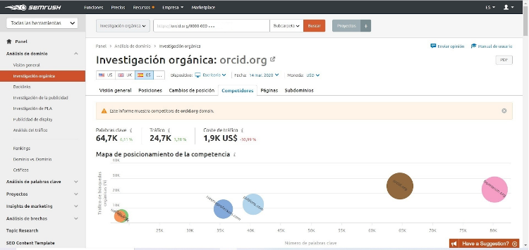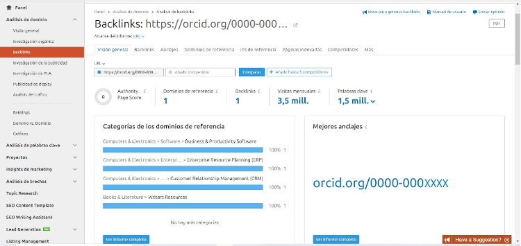 Con la opción de pago SemRush analiza extensiones de los sitios web que se introducen en la barra de búsqueda ―no ya simplemente el tráfico que genera el dominio principal―, indispensable para medir el tráfico de un usuario en ORCID, Google Scholar, Publons, ReaserchGate, Academia.edu, Directorio Exit o Mendeley.