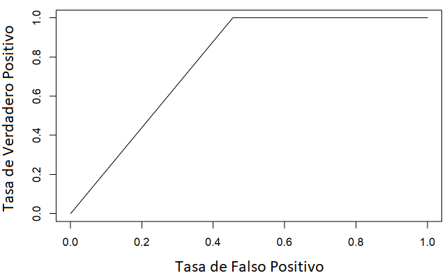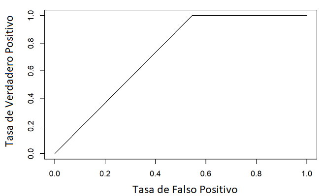 De la Tabla 6 podemos concluir que 1 de 23 predicciones fueron erróneas, mientras que 22 de 23 predicciones acertaron. La Figura 11, muestra la curva ROC del modelo, y se observa que la curva es tangencial a 1.