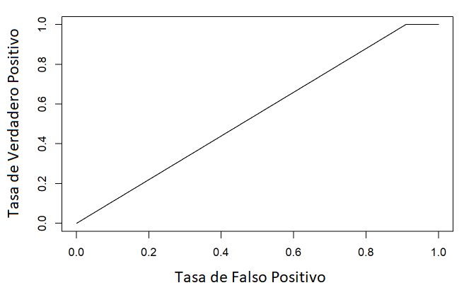 De la Tabla 8, podemos concluir que 6 de 23 predicciones fueron erróneas, mientras que 17 de 23 predicciones acertaron. La Figura 13, muestra la curva ROC del modelo, y se observa que la curva se comporta como la curva del modelo SVM.