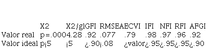 Table 5 shows the real value and the ideal value, following Levy, Varela, and Abad (2006), showing that the criteria of all the goodness-of-fit indices are met, so that the model is fully confirmed.
