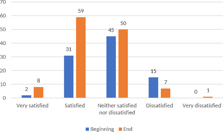 There was an evident increase of the very satisfied and satisfied options when comparing the beginning and end of the process expectations regarding the students in the professors’ point of view.