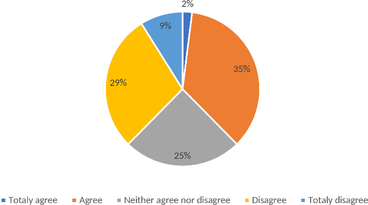 There isn’t a clear vision from the answers giving by the professors; 38% disagree and totally disagree, while 37% agree and totally agree. This opposite vision could be explained by the different types of degrees and syllabus existing inside the institution.