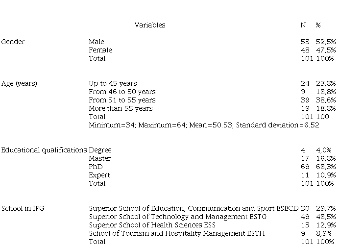 The survey’s target group consisted of all professors teaching at the four schools of IPG in Guarda and Seia, Portugal (School of Education, Communication and Sport; School of Technology and Management; School of Tourism and Hospitality Management and the School of Health Sciences).
