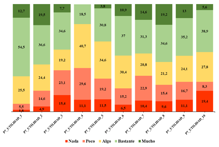 Nota: P7_1 = Textos literarios para tableta; P7_2 = Textos literarios transmedia; P7_3 = Fanfiction; P7_4 = Wattpad; P7_5 = Goodreads; PT_6 = BookTube; P7_7 = Literatura en tráileres; P7_8 = Foros de lectura literaria; P7_9 = Revistas digitales de literatura; P7_10 = Digital storytelling.