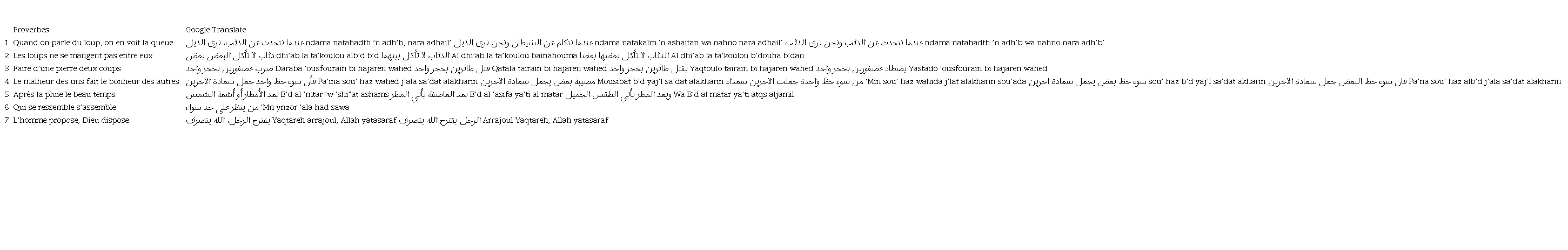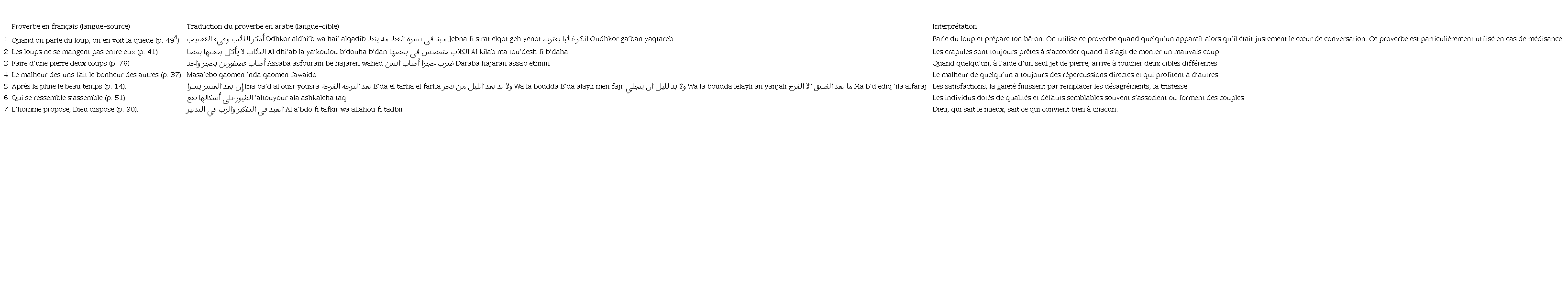 Recherche sur plusieurs sites internet de l’équivalent arabe des proverbes.