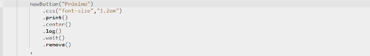 Normalmente, a PCIbex percorrerá todo o script, linearmente, caso ele não apresente erros de digitação ou sintaxe. Dessa forma, se um elemento é exibido na tela por um comando “print”, ele desaparecerá, imediatamente depois, quando a ferramenta ler a linha de comando seguinte. Como esse processamento é feito em questão de milissegundos, em alguns casos específicos será necessário manter o elemento na tela por mais tempo, até que o participante execute uma ação, por exemplo. Para isso, o comando “wait”, permite que a aplicação só processe a linha seguinte após alguma interação do participante com o elemento no qual ele está contido (normalmente, um elemento do tipo botão ou do tipo seletor). Assim, todos os elementos exibidos anteriormente no escopo do comando “wait” permanecerão na tela, aguardando a ação do participante ou um novo comando que anule a ação de espera (Figura 16).
