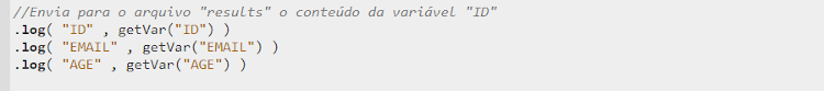 De forma semelhante ao “print” e ao “wait”, o comando “log” não terá outros comandos como conteúdo e será declarado em elementos para os quais se faz necessário gravar alguma informação fornecida pelo participante. Assim, a função do “log” é salvar informações, que depois constarão no arquivo de resultados (Figura 17).