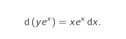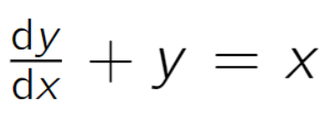 Un caso particular de esta última se reconoce como y'(x) + y(x) = x, o bien en su forma operativa: y' + y = x, aunque también: , puesto que