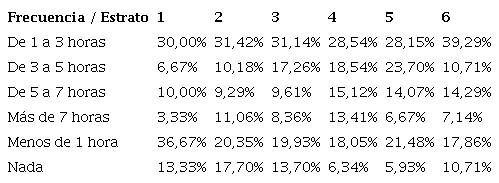 La adquisición de este tipo de dispositivos supone un esfuerzo económico para hogares del segmento medio, pero no para quienes están por encima de ese segmento, como también sucede en otros países (LAREAU, 2003; VINCENT y BALL, 2007). Al cotejar esta información con los resultados, se encuentra una coherencia, pues el uso de tabletas para navegar en internet se incrementa en los estratos 4 y 5 con respecto a los segmentos 1, 2 y 3, aunque se evidencia que el estrato 6 no supera el consumo de este dispositivo en relación al 5.