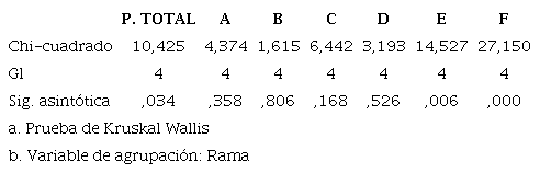 Para ello se aplica el estadístico no paramétrico Prueba de Kruskal-Wallis. La Tablas 9 y 10 presenta los valores de KW y rango promedio.