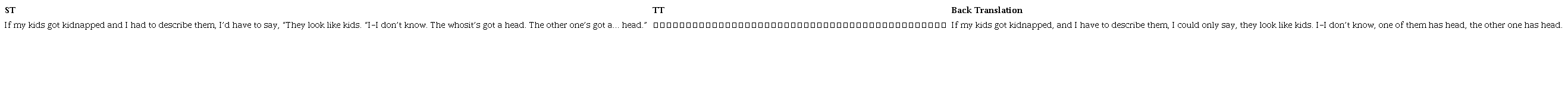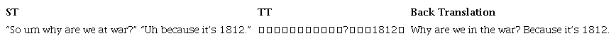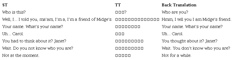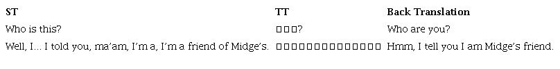 The example in Table 3 happens when Midge is performing a stand-up comedy. She did not have photos of her children, so when her children were kidnapped, she could only describe them both with uncertainty. Nonetheless, transfer was used as the strategy to translate this situation; the structure of the English language did not fit in with the Chinese language, but the structures were transferred literally. The unnatural narrative style showed the clumsiness of the TT that disturbs the audiences’ watching experience, and it may reduce the conveyance of the humorous effect. The inappropriate use of Transfer may be due to the deficiencies of language proficiency of fansubbers that causes the failure in observing the structural differences between the languages.