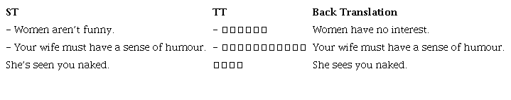 However, in some of the excerpts, although GTVH enables the translators to produce the translations that are highly similar in terms of the parameters, the function of the text, humour, is not preserved in the TT (Table 12).