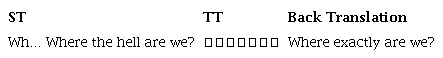 Resignation is employed when the meaning is inevitably lost and there is no translation solution (GOTTLIEB, 1992). Only three examples were found in applying resignation (Table 8). The loss of meaning and humour was caused because of the misunderstanding of the meaning and ST context.