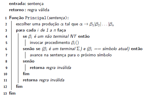 O algoritmo completo para um conjunto de regras de produção de tamanho n, em que cada possibilidade de produção é representada pelo símbolo βi , é o seguinte: