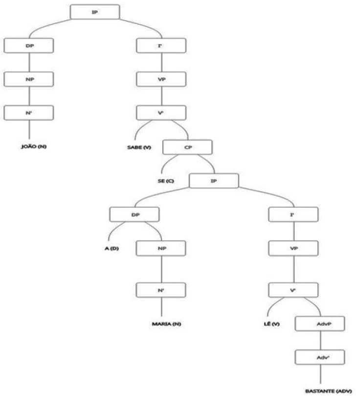 Nosso Parser executou corretamente essas estruturas, conforme exemplo da Figura 7, (13) “João sabe se a Maria lê bastante”.
