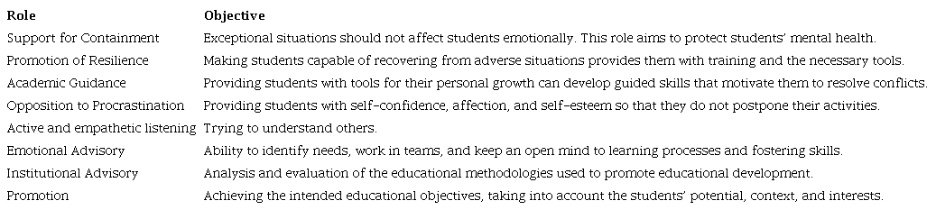 Some analyses of the strategies to face the situations of stress experienced by the educational community show that the measures to be implemented should be aimed at the internal strengthening of everyone (VALERO CEDEÑO et al., 2020). Teachers and students faced the challenge of promoting support measures, training, and learning soft skills. The European Commission (2018) stated that social and emotional skills help individuals learn to react to uncertainty. ”A higher degree of emotional regulation is related to a lower experience of stress factors” (CUEVAS LÓPEZ; ÁVALOS RUIZ; LIZARTE SIMÓN, 2021, p. 12). These skills can also help cope with stressful situations; they need to be reinforced (MARRERO SÁNCHEZ; MOHAMED AMAR; XIFRA TRIADÚ, 2018).