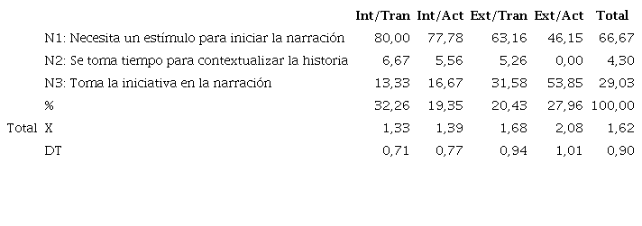 Se constata que el grado de autonomía durante la tarea narrativa se incrementa a medida que crece el nivel de extroversión (p = 0, 019) (Tabla 9).
