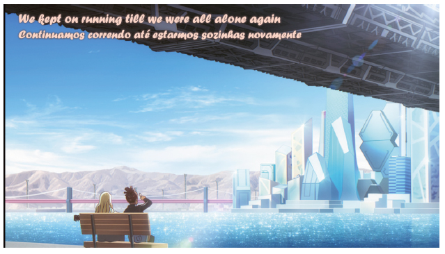 Efetuada a nomeação dos arquivos, avaliamos e tratamos os arquivos de legendas com um olhar especial às peculiaridades de cada grupo e cada obra de anime, antes de ampliarmos o corpus em si. Decidimos, por exemplo, utilizar o programa Aegisub11 para colocar em angulares (< >) as legendas com palavras escritas em caracteres estrangeiros, ou legendas com frases em outros idiomas, algo que geralmente aparece durante a abertura e o encerramento de um anime. Dessa forma, eles serão reconhecidos pelo WordList, ferramenta disponibilizada pelo WordSmith Tools©, e todos os caracteres que estão entre os angulares não servirão para contagem de palavras do corpus. O que fundamentou esta decisão foi principalmente a língua utilizada nos textos a serem imputados no CorLeAni: língua portuguesa. Em ambos os casos, de palavras escritas em caracteres estrangeiros e de legendas em outros idiomas que não o português brasileiro, são exemplificados a seguir, nas Figura 10 e Figura 11, respectivamente.