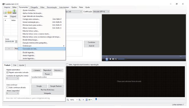 Olhando para a linha 8 na Figura 26 (antes) e para essa mesma linha na Figura 27 (depois), conseguimos perceber que as tags de formatação foram removidas do arquivo de legenda. Destacamos que ambos os programas de legendagem supramencionados têm funções que não foram exploradas por estas pesquisas por fugirem aos interesses presentes, embora reconheçamos que algumas delas podem facilitar processos de padronização, como também de substituição de padrões. A ferramenta conversão em lote, por exemplo, poderia ser empregada para aplicar uma substituição múltipla de determinadas palavras ou códigos, tomando diversos arquivos de uma só vez, a depender do contexto. Porém, preferimos nos limitar às funções apresentadas, pois já nos trouxeram resultados satisfatórios.