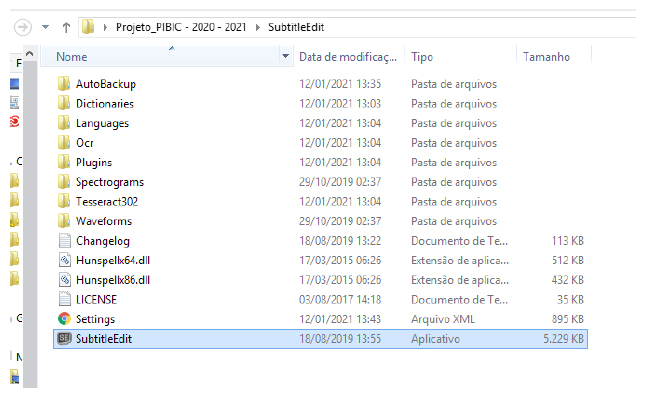 Após realizarmos o download individual pelos meios disponibilizados pelos fansubbers, foi feita a extração das legendas utilizando o aplicativo Subtitle Edit. As imagens a seguir retratam a organização do material baixado no computador (Figura 2), o manuseio do programa Subtitle Edit e o passo a passo da extração das legendas nesse programa (Figuras 3 a 7). Por fim, temos o resultado do processo de extração (Figura 8). Para o caso das duas obras legendadas pela Seoltang e pela Illuminati, preferimos não realizar o processo de download e extração. Optamos, nesse caso, pelo download das legendas a partir dos links disponibilizados por estes grupos, o que otimizou nosso tempo.