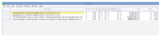 Um achado interessante que corrobora os dados estatísticos obtidos é a ocorrência de palavras repetidas no corpus, como podemos observar na Figura 36, conforme atestados pelos resultados obtidos por meio da ferramenta Concord.