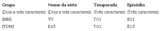 Nesta etapa, com o material de estudo em mãos, seguimos com a nomeação dos arquivos de legendas (Figura 9). Para facilitar a identificação das obras, estabelecemos o padrão apresentado na Tabela 3.