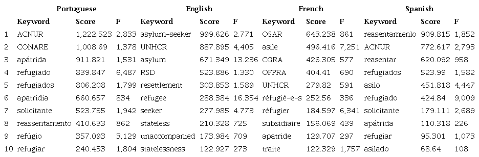 Palavras-chave: Compilação de corpora, Corpus especializado, Terminologia direcionada por corpus, Corpus multilíngue, Migração e refúgio.