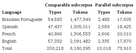 Another essential aspect to be considered is corpus balancing, especially in the case of comparable corpora. A balanced comparable corpus usually has a similar number of tokens, similar text typologies, genres, and linguistic varieties across languages (BERBER SARDINHA, 2004; TEIXEIRA, 2008) to allow comparisons. It might be the case that the size and typology of texts vary among languages and/or among cultures within the same language. However, the departing point in building a comparable corpus is to look for similar textual features across languages when collecting texts to build the corpus.