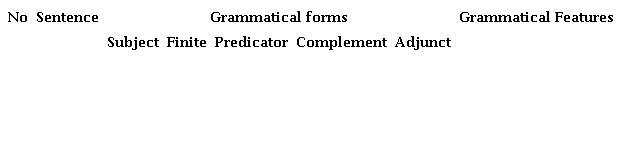 The students were required to select sentences from the statistical texts they had read and to fill out the grammar log above as part of the grammar log task. They were also required to identify relevant grammatical features inherent in the selected sentences, such as (1) the topic or theme; (2) the comment or rheme; (3) the tense; and (4) modality; (5) mood: declarative, interrogative, or imperative; (6) polarity: negative or positive; (7) the form of active-passive; (8) connective devices; (9) referents (10) sentence types: simple sentence, compound sentence, complex sentence, or compound-complex sentence. The grammar log maintained a record of the grammar resources that the students had learned (Table 3).