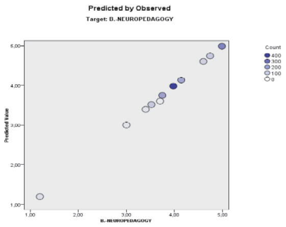 Next, an automatic linear modeling was performed, for which Neuropedagogy was taken as a target, and the variable ”country” as a weighting element of the analysis. The result shows a model with 100% accuracy, which can be seen in Figure 1: