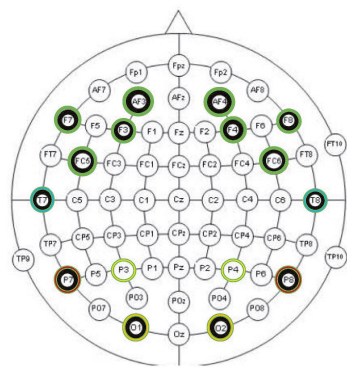 Next, we show the location of the BCI electrodes (Figure 2), as well as the placement of the emotiv (Figure 3) on the author. We begin the neuroimaging process by showing the brain function, extracted from a group of twenty-two children (8 years of age), randomly taken from an educational center, who is subjected to the following tasks, in his usual context: the children are reading three texts: 1) text and imagen (Figure 4); 2) text in script font (Figure 5); 4) foreign language (Figure 6); 5) arithmetic operations of addition (Figure 7); 6) subtraction (Figure 8); 7) multiplication (Figure 9); 8) division (Figure 10); 9) and a mathematical problem solving (Figure 11). In each case we will draw some appropriate neuropedagogical conclusions. As an example, the aim is not to draw general conclusions, nor standardized guidelines, which will be published in later works, but to show the lines of research that we are developing in the research groups EMIPE (University Autonomous of Madrid), ProfesioLab (University of Granada), and the University of Jaén in Spain.