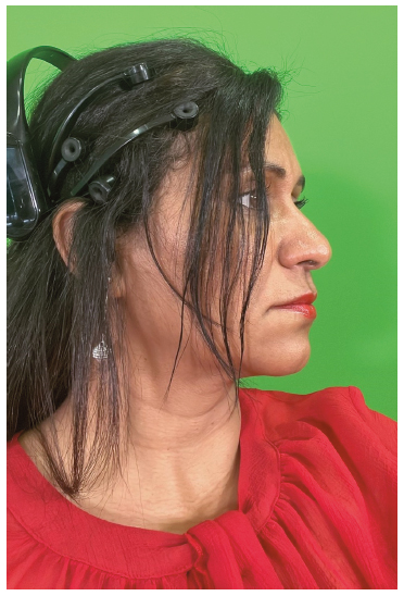 The location of the BCI electrodes is shown below (Figure 2), as well as the placement of the emotiv on the author (Figure 3). The research process has been carried out with a female teacher, with ten years of teaching seniority, and experience in school management. The brain imaging has been performed in her usual environment, and her normal activity (the BCI is portable), so her daily work in the classroom is not altered. The brain image corresponding to a traditional methodology (explanation of a concept) (Figure 4) and to a mobile learning methodology (using kahoot) (Figure 5) is shown. In each case we will obtain some neuropedagogical conclusions about the neuroimaging obtained. Logically, we cannot draw general conclusions, but show the lines of research that we are developing in the research groups EMIPE (Universidad Autónoma de Madrid), ProfesioLab (Universidad de Granada), and the University of Jaén in Spain.