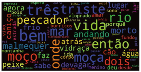 Após o processamento de todos os arquivos, chegamos às seguintes palavras mais frequentes nas obras: “onde”, “vida”, “mim”, “sempre”, “tarde”, “rio”, “mar”, “triste”. Neste ponto, salientamos que, sem os recursos computacionais da Linguística de Corpus e suas interfaces com os Estudos Literários, tais resultados se tornariam exponencialmente trabalhosos, uma vez que a análise das palavras se dá token a token, isto é, uma a uma, e é realizada automaticamente pelo algoritmo criado. Na seção seguinte, são apontados breves caminhos de análise que conciliam a frequência das palavras com as epígrafes de cada autor-anagrama.