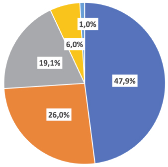 A la pregunta sobre las razones por las cuales las mujeres no estudian carreras STEM, la respuesta con el mayor porcentaje fue: que socialmente estas carreras son vistas como carreras de hombres con un 47,9 %, la falta de motivación a las mujeres en el estudio de estas carreras ocupa un segundo lugar con el 26 % y el tercer lugar hace referencia a la falta de interés en el área STEM por parte de las mujeres 19,1 %, otras causas que se mencionan son: carreras individualistas, carreras poco sociales con 6,0 %, solo el 1,0 % de los encuestados considera que las el mujeres no son buenas para estudiar este tipo de programas. Los resultados se presentan gráficamente en la Figura 1.