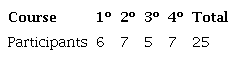 The study was carried out in a school located in the city of Granada (Spain), with students from different socio-economic and cultural backgrounds. The sample consisted of twenty-five adolescents (twelve boys and thirteen girls), aged between twelve and seventeen, all of whom were in compulsory secondary education (6 participants in the first year, 7 in the second year, 5 in the third year and 7 in the fourth year), as shown in Table 1.